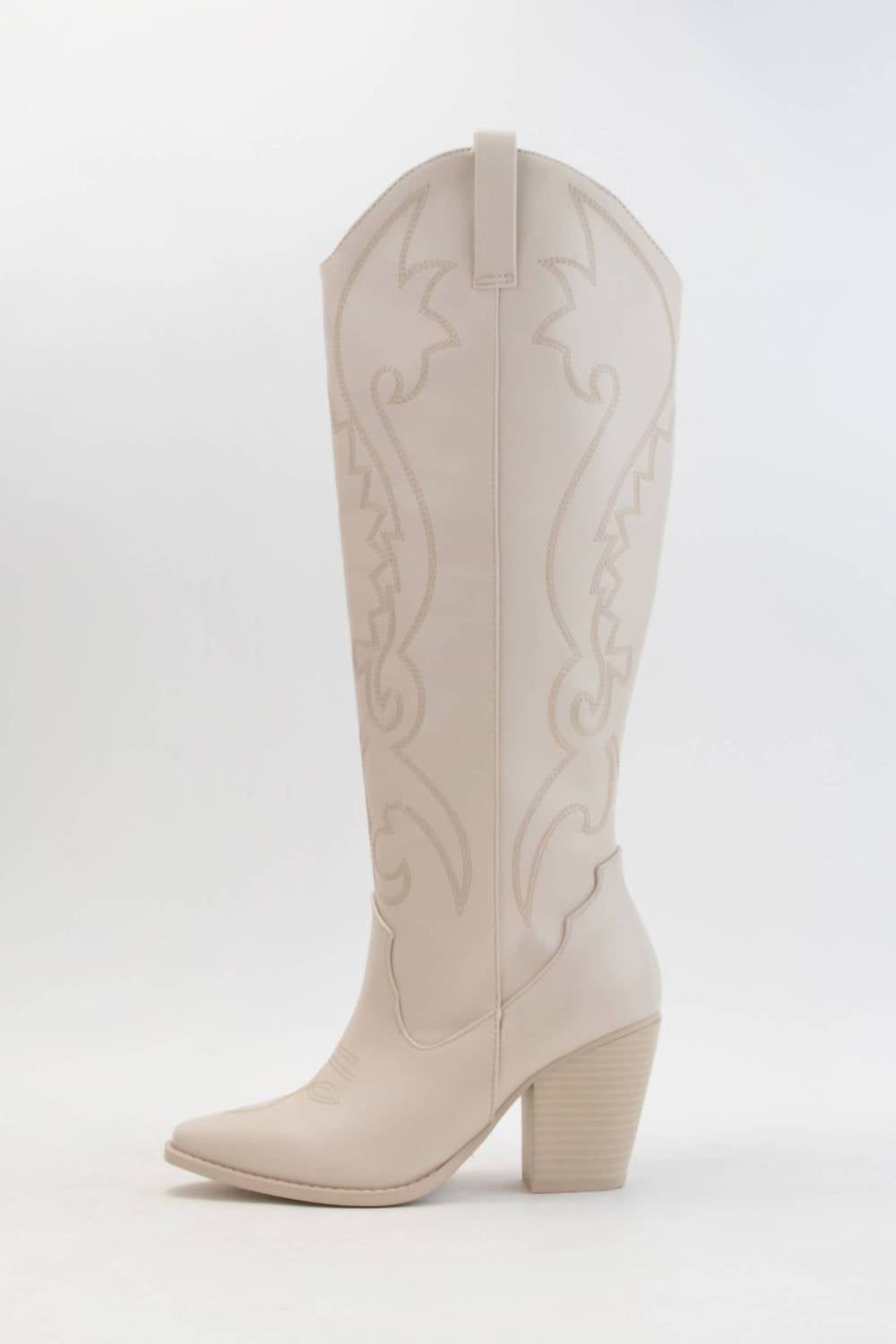 A stylish boot with a comfortable fit and the perfect amount of height. These classic boots are the perfect addition to any outfit and can be worn season after season.Step into style with the Embroidered Western Boots by CCOCCI, perfect for adding a touch of Western flair to your wardrobe. Crafted from bone faux suede leather, these heeled boots feature a pointed toe and pull-on style for easy wear. The sturdy block heel measures 3.25 inches, while the shaft height stands at 15.5 inches, giving you an elevated look. Ideal for concert-goers and Western trend enthusiasts, these boots capture the essence of fall fashion.