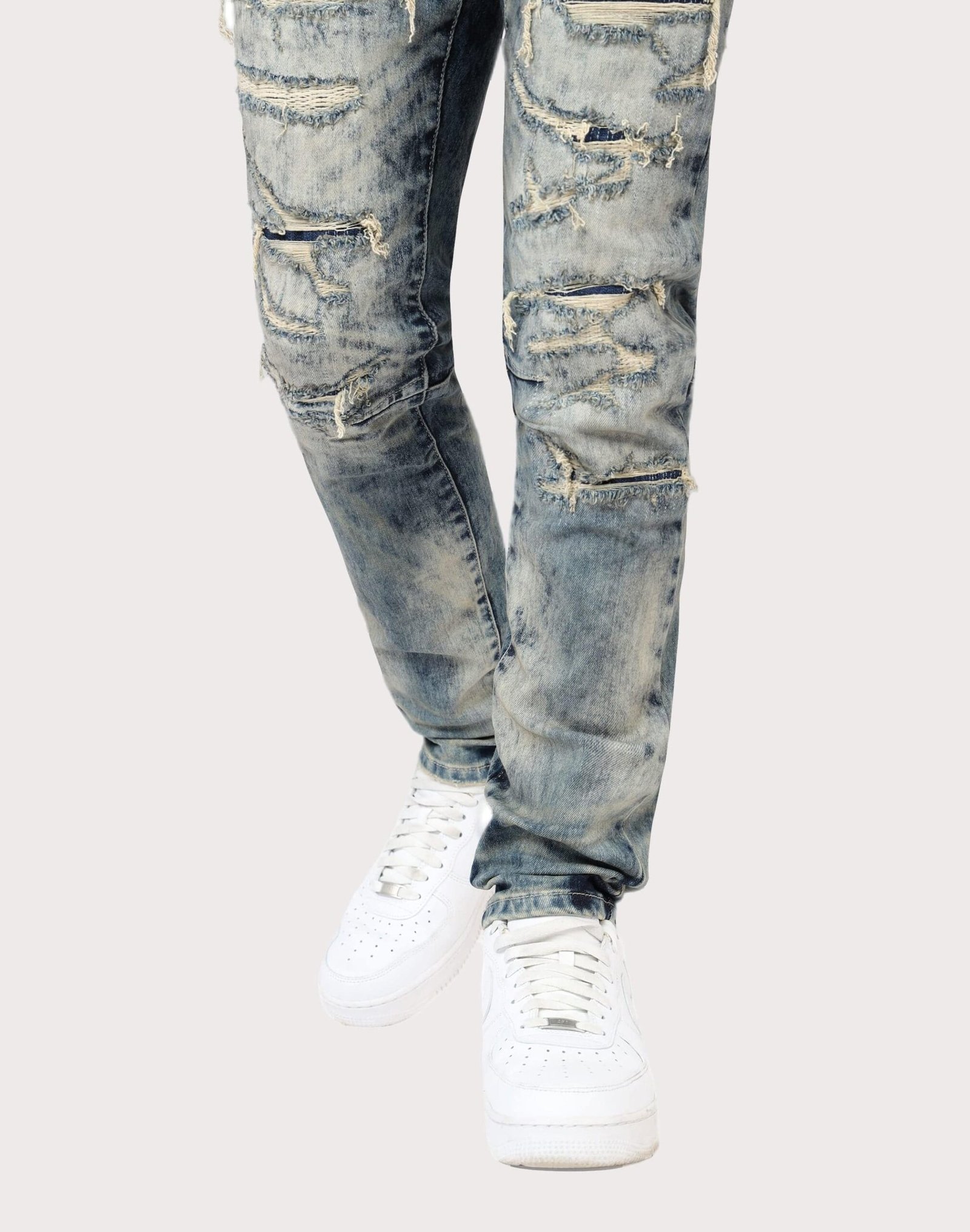 Grindhouse Ross Blue Slim Fit Taper Vintage Baking Effect Men’s Denim Jeans are a no-competition garment with workable durability and an unmistakable spirit of revolution against the norm, guaranteeing them to outlive any passing trend. Make your mark on the world and check out the greater selection of Grindhouse!
