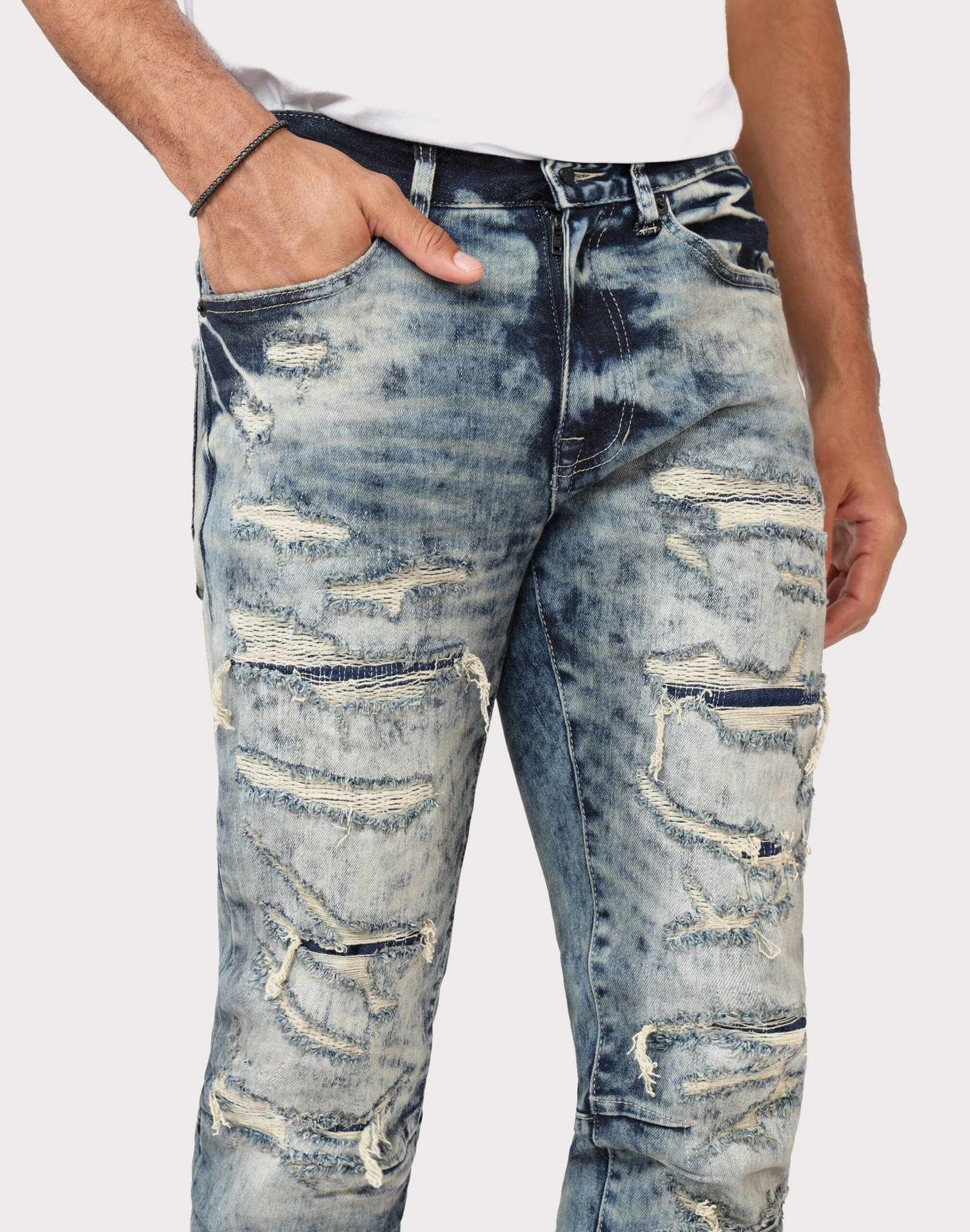 Grindhouse Slim Fit Taper Vintage Baking Effect Denim Jeans