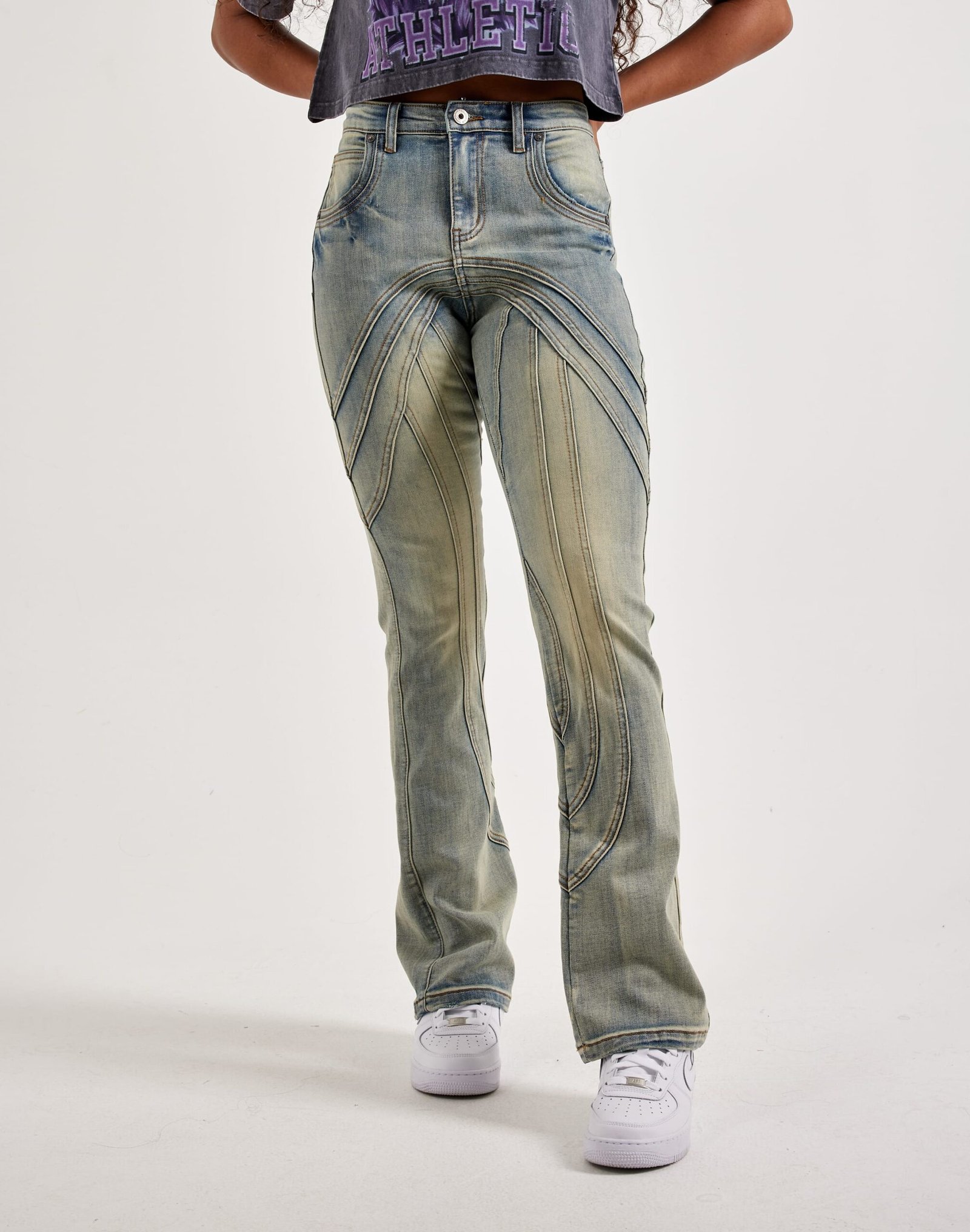 The Kilogram Line Stacked Denim Jeans fuse streetwear style with functional edge, featuring a paneled design and a stacked fit. Designed with bold accents, these jeans bring a standout look to any urban wardrobe.