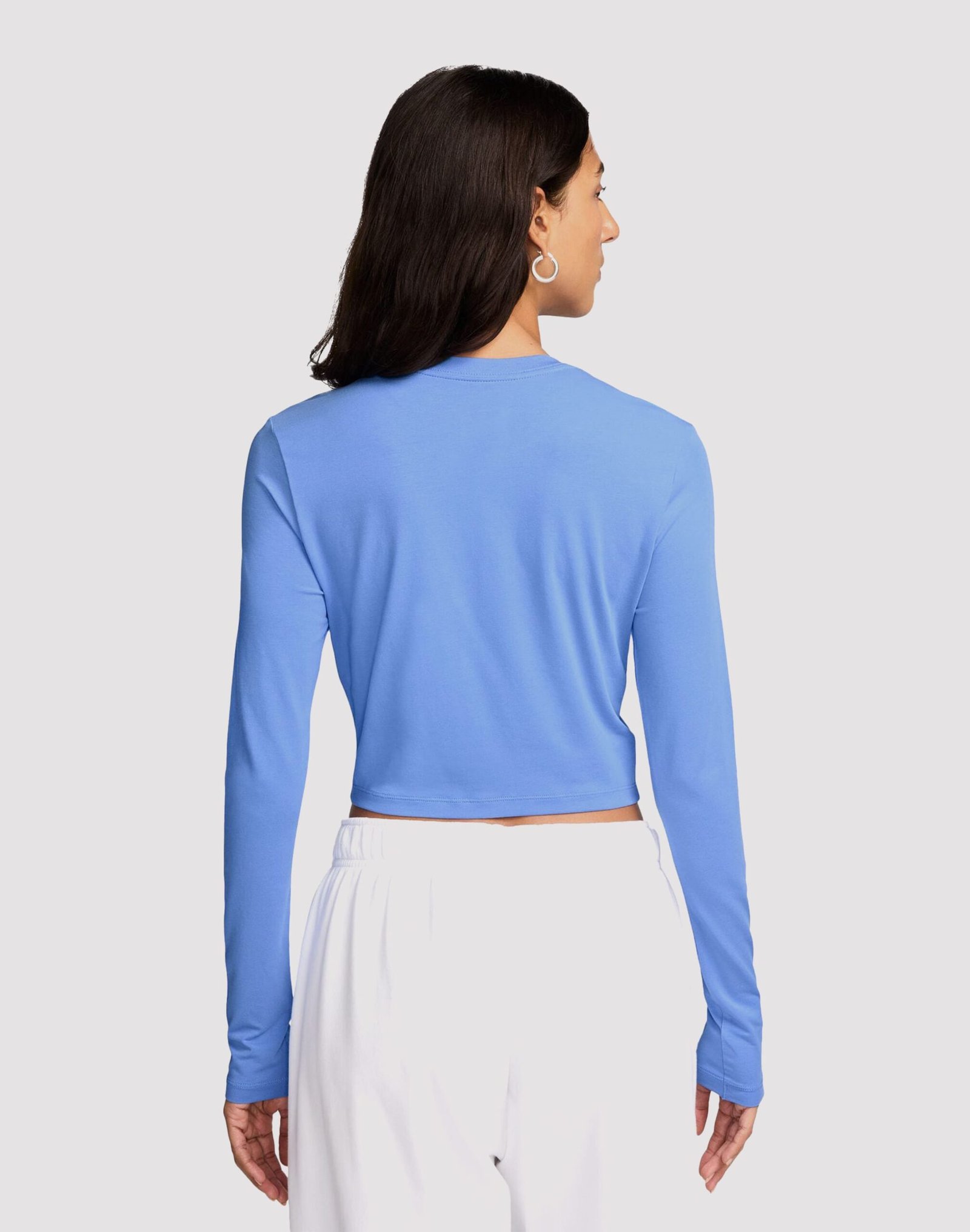 Grounded in style, comfort and versatility, take on the day in this tee. With a subtle Swoosh on the front and a slightly cropped length, this?Nike Women’s Sportswear Slim Long-Sleeve Crop Shirt?? Nike Women’s Sportswear Slim Long-Sleeve Crop Shirt?? is ready for whatever you are. Our smooth jersey is stretchy with a slight drape, making it perfect for everyday wear.