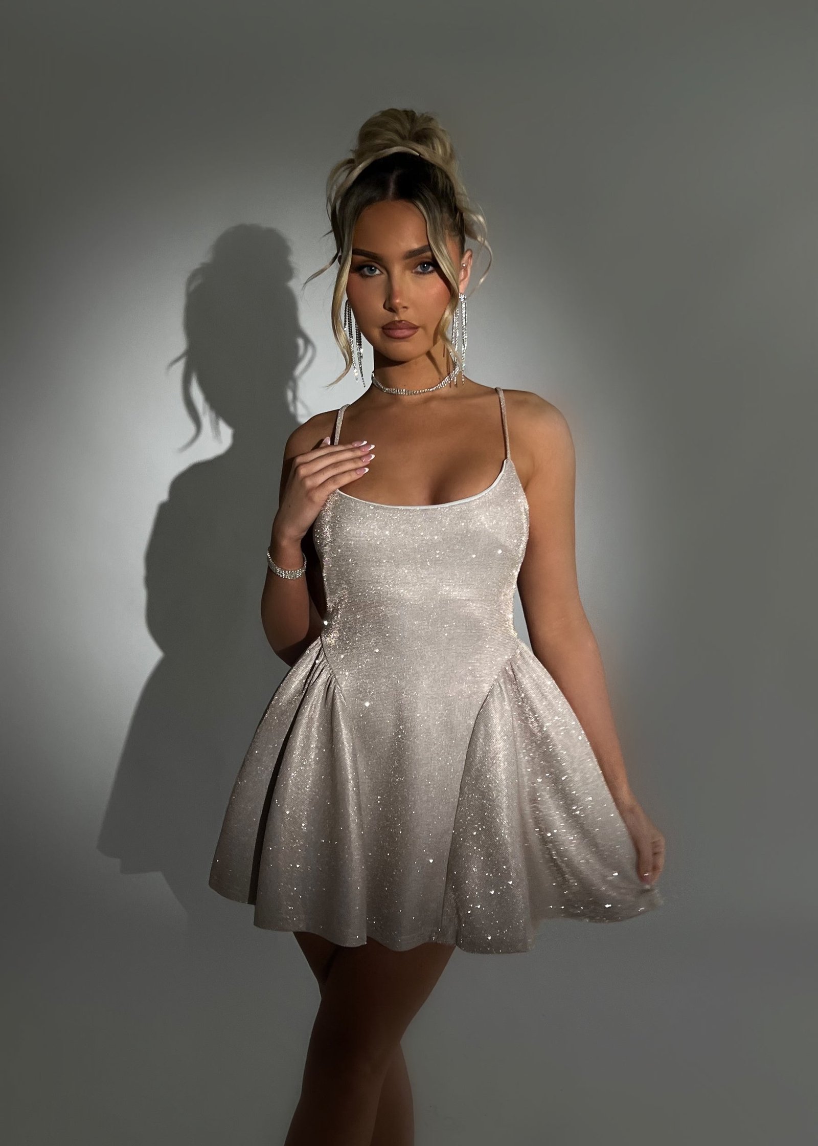To Be Loved Glitter Skater Mini Dress – Rose Gold