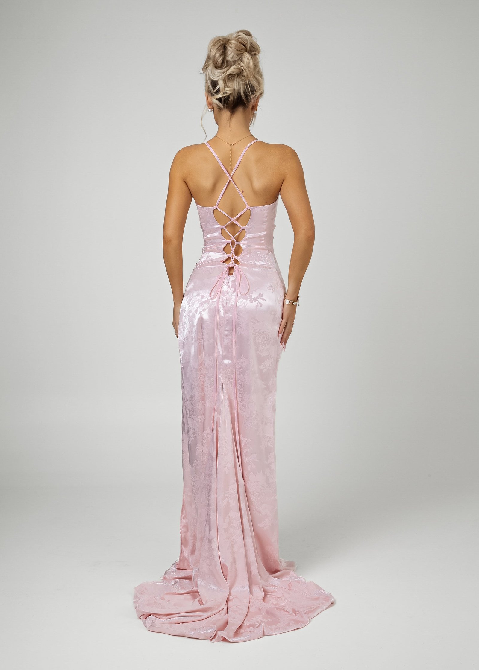 Worth Waiting For Cross Back Gown – Jacquard Pink